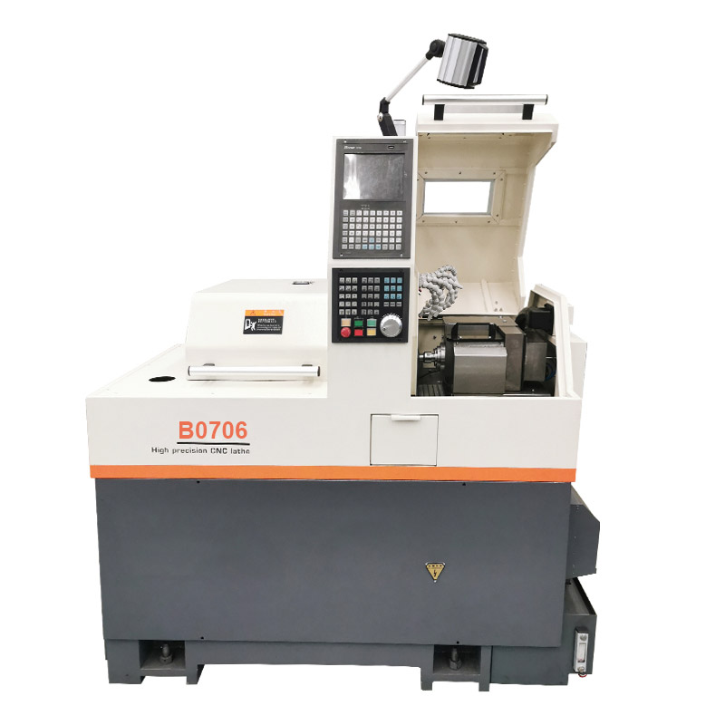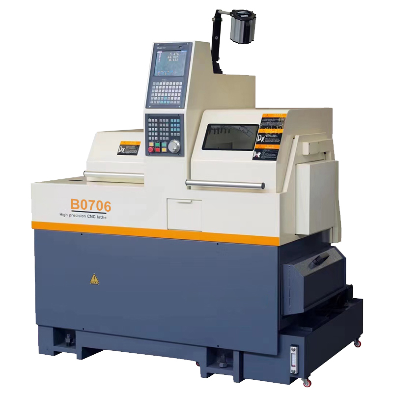 The B0706 dual-spindle swiss lathe machine has the capacity of car and milling composite, a high-precision, wide range, and highly practical processing equipment. This swiss lathe machine is suitable for the large-scale, multi-variety, and high-precision processing tasks of “slender shafts” parts with relatively large diameters and “small” and “alien” parts. Cars, motorcycles, communications, cooling, optical, optical, home appliances, microelectronics, electronics, clocks, mobile phones, and other industries have a variety of high-precision, multi-batch, complex shaft parts, and small precision parts.