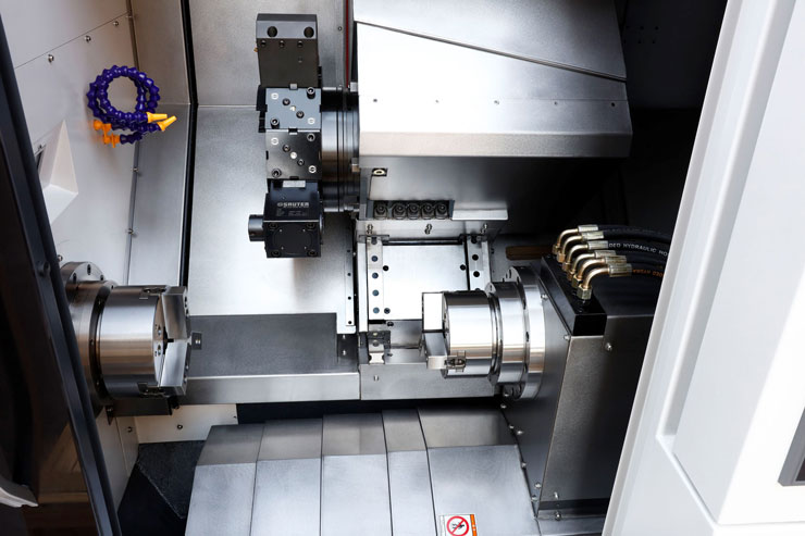 6-Axis Dual Spindle Turning center: X+Z1+Z2+Y+C1+C2 with BMT type-driven tool turret.