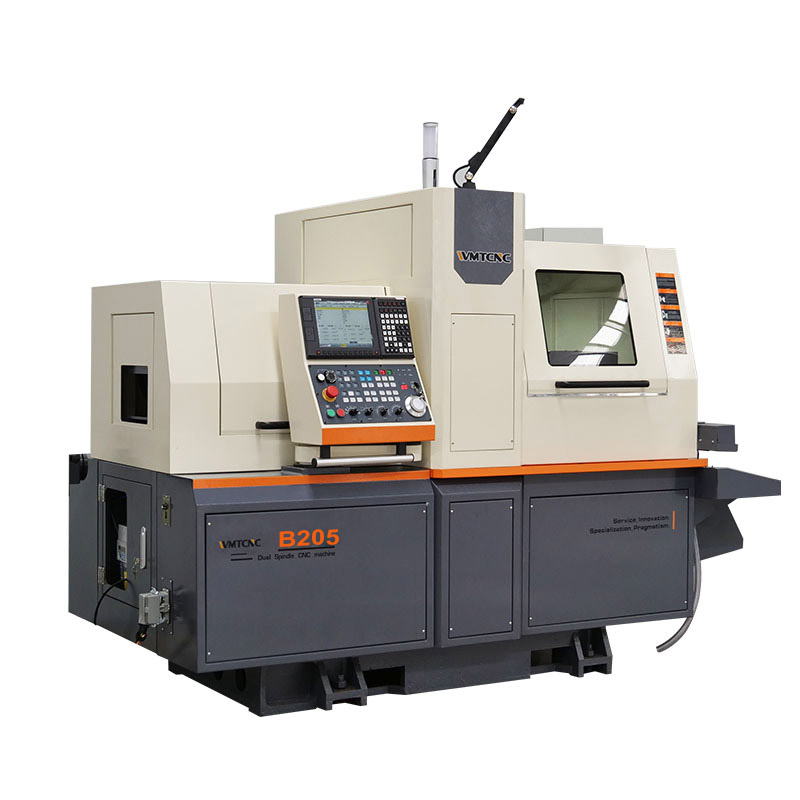 B205 swiss type cnc lathe CNC system adopts four axis four linkage, high stability, high precision, easily operate. If process need, the slide live tools can be selected to drill and mill. Swiss type cnc lathe with structual design stability, high quality cast iron bed and strong rigidity. Configurated with feeder, realize automatic continuous processing.