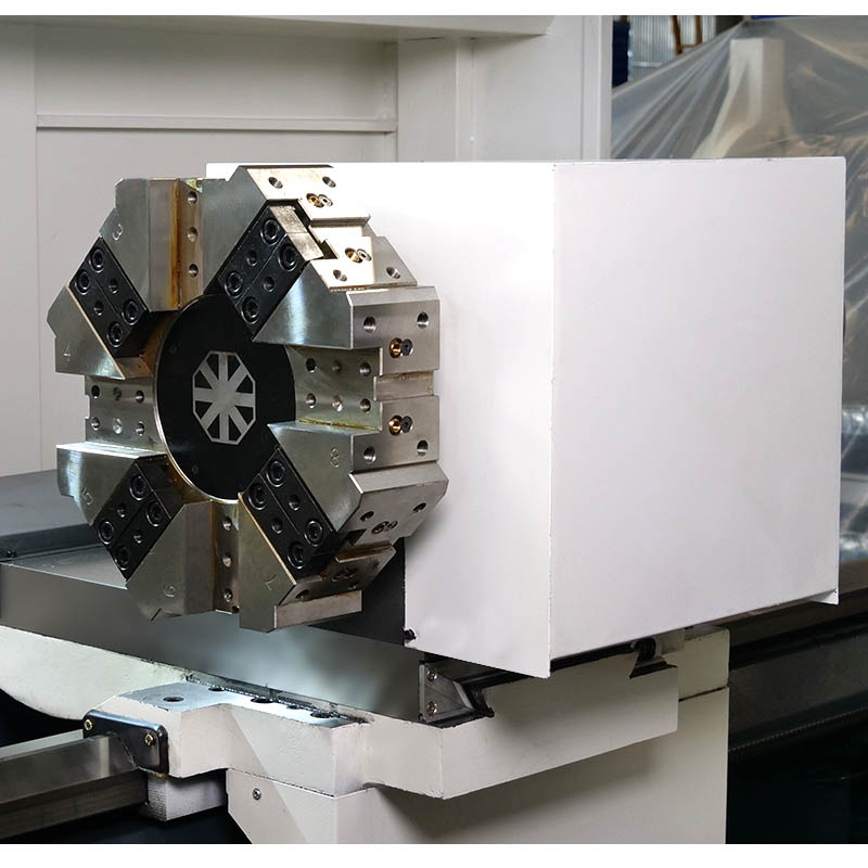 1.Large spindle aperture with high passability and stable workpiece clamping with double chucks.