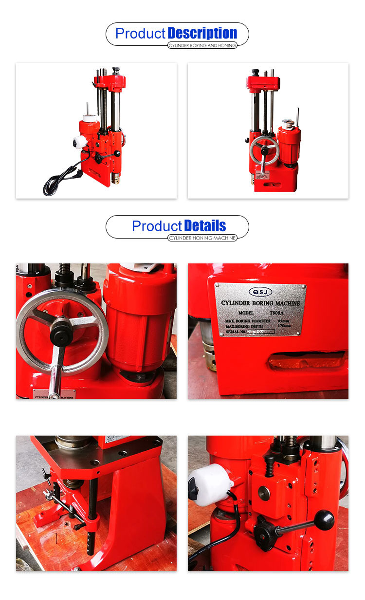 The cylinder boring machine T808A is mainly used for reboring engine cylinders of motorcycles, automobiles, and middle & small-tractors.