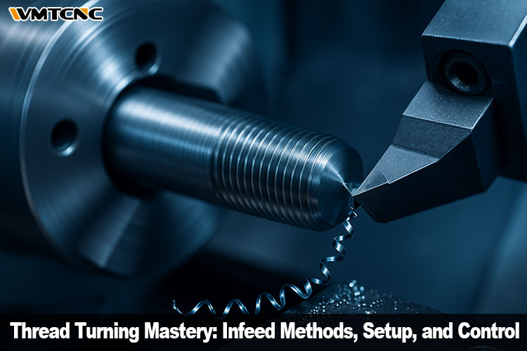 Thread turning rewards forethought. Respect the non-negotiables—feed = pitch, planned pass schedules, and safe exits. Pick an infeed strategy that matches your material, geometry, and evacuation realities. Prepare your chamfer and relief, keep tools aligned and supported, and validate with a scratch pass before committing. On CNC, trust cycles but verify retracts; on manual lathes, trust the dial but verify the math. With disciplined setup and pragmatic troubleshooting, you’ll hold pitch, nail flank finish, and deliver threads that gauge right—first time and every time.